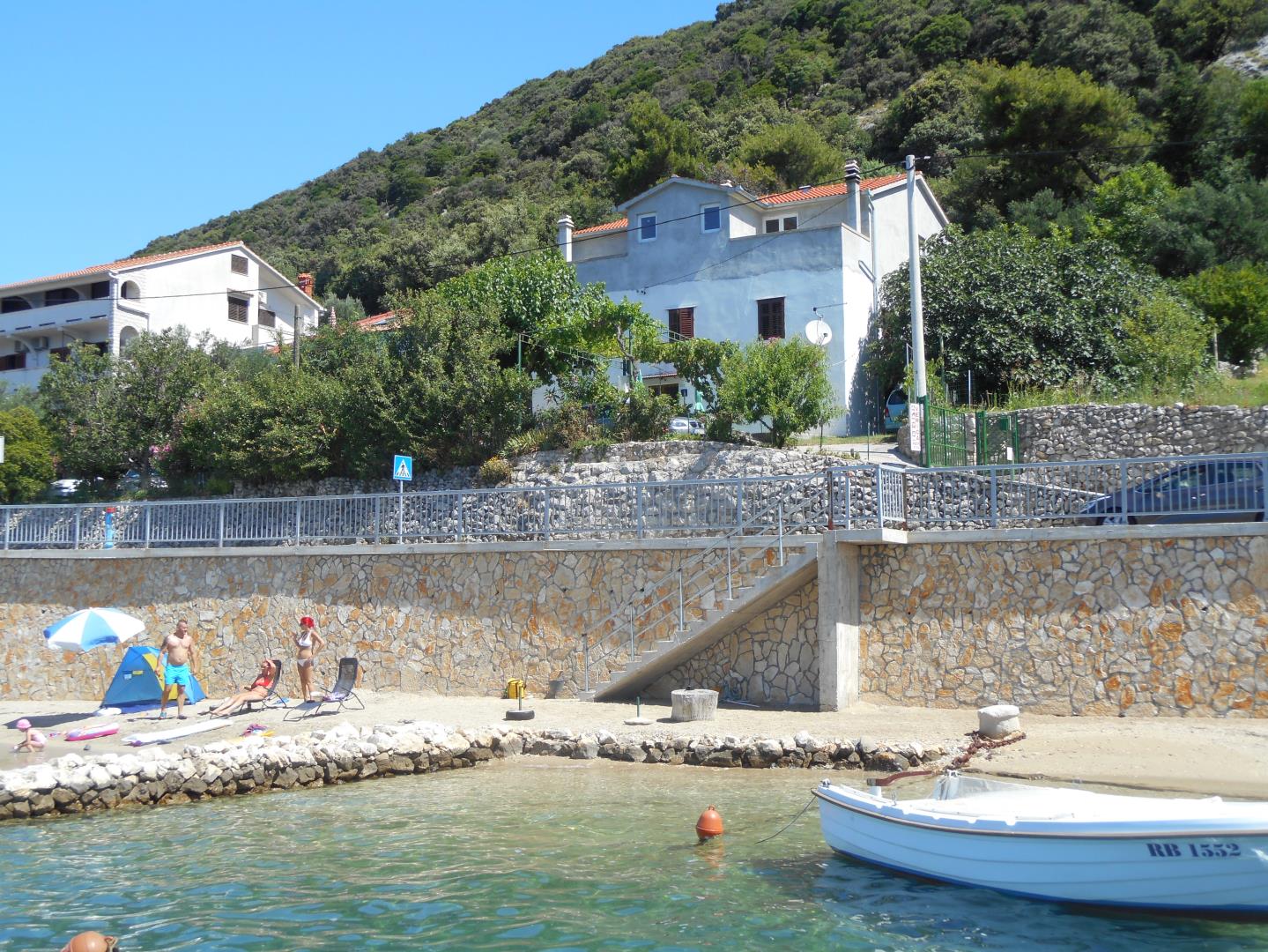 Pogled, roštilj, ležaljke i suncobrani